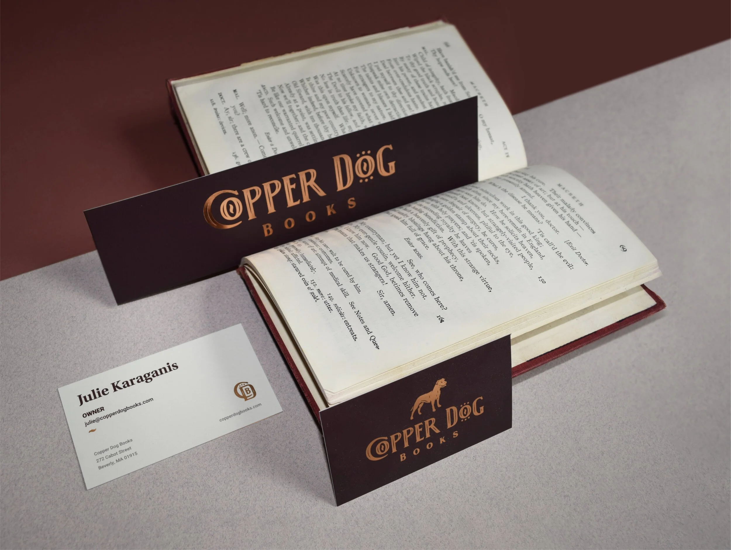 Copper Dog Books offers a wide range of books, book-related products, gifts, and cards with stellar customer service in downtown Beverly, MA, a beautiful ocean-side community. The owners, Meg Wasmer and Julie Karaganis, are Beverly residents who wanted to open their doors with a brand identity that reflects the historic downtown and gracefully threads its establishment into the community, like a hidden secret for 100 years.