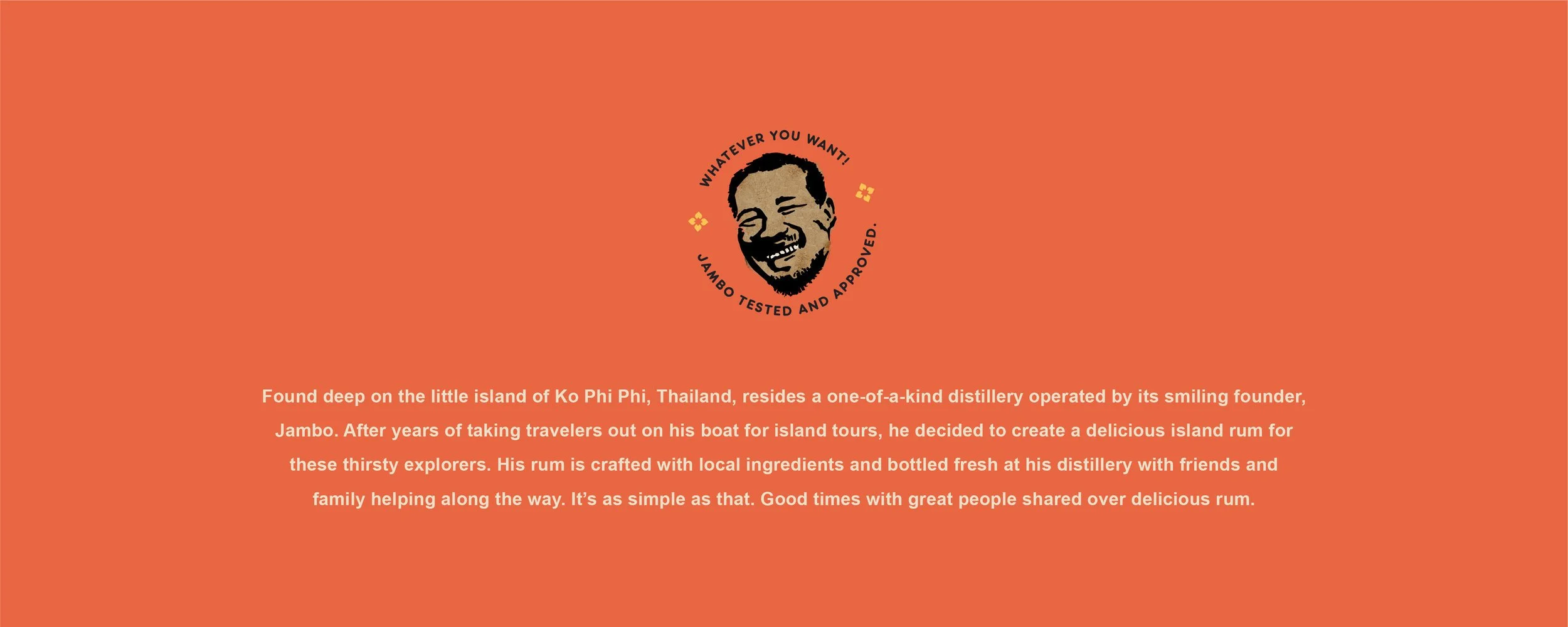Found deep on the little island of Ko Phi Phi, Thailand, resides a one-of-a-kind distillery operated by its smiling founder, Jambo. After years of taking travelers out on his boat for island tours, he decided to create a delicious island rum for these thirsty explorers. His rum is crafted with local ingredients and bottled fresh at his distillery with friends and family helping along the way. It’s as simple as that. Good times with great people shared over delicious rum.